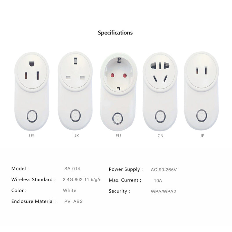 Model: Neutral wifi socket Color classification: SA-014 British standard UK SA-014 American standard US smart Type: Connected Tmall Elf Whether intelligent control: Yes app: ewelink Power: 2000w Rated current: 10A